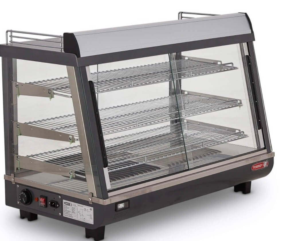 Vitrina caliente para calor seco o húmedo con tres niveles de exhibición y fácil acceso posterior y sellado térmico de gran eficiencia.